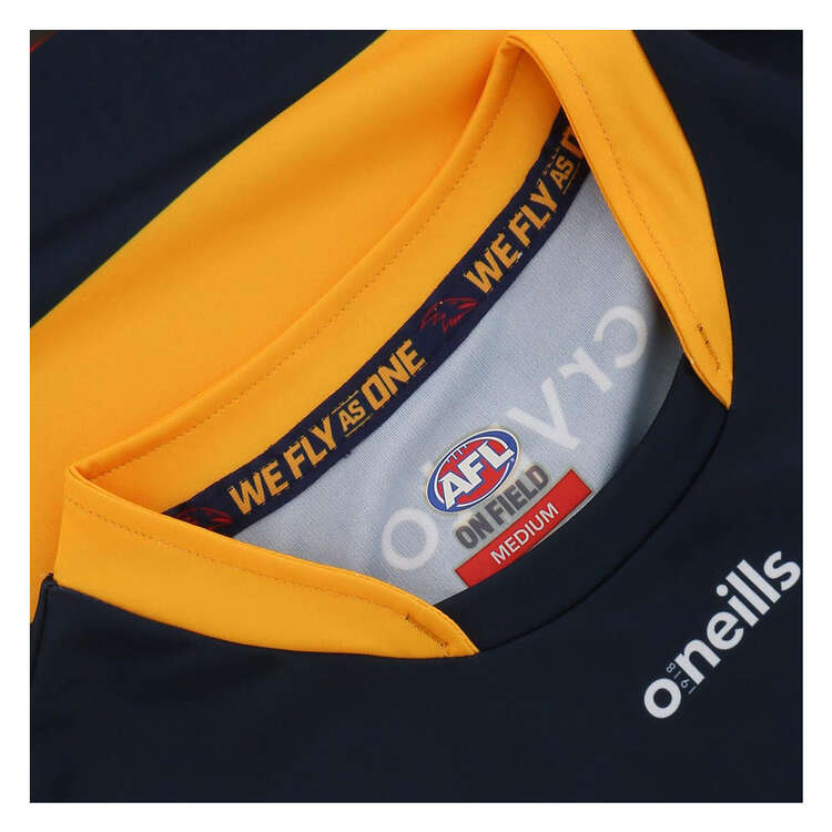 Wear your team colours and show your support this season in the Adelaide Crows 2023 Men’s Home Guernsey. Constructed using lightweight and moisture-wicking fabric so you can remain comfortable, cool and dry all day. Complete in sublimated Crows home colours it also features a woven locker tag at the hem which displays the team crest. Back your team on the home field while wearing the Adelaide Crows 2023 Men’s Home Guernsey.