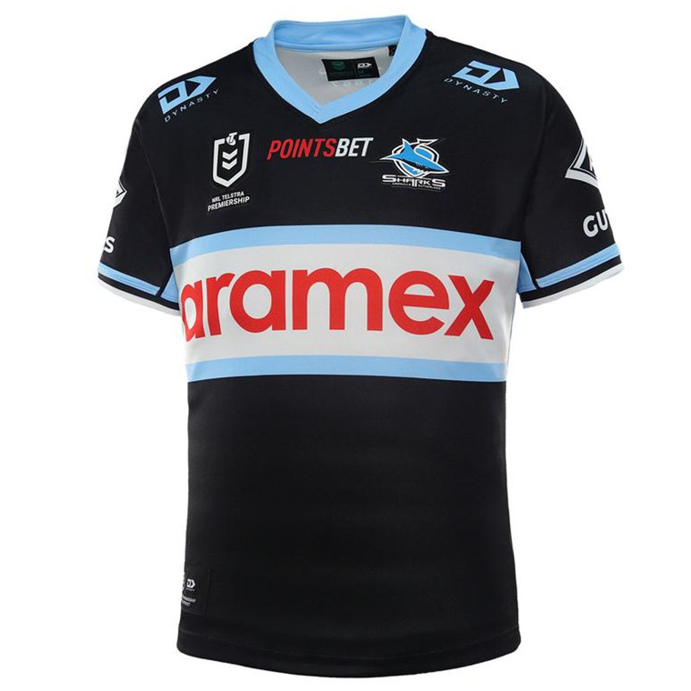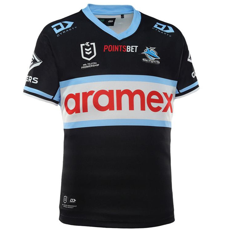 The Cronulla-Sutherland Sharks 2022 Men’s Away Jersey draws inspiration from previous Sharks jerseys combines the distinctive away game look and feel with Cronulla Sharks blue accents and the traditional chest centre hoop.