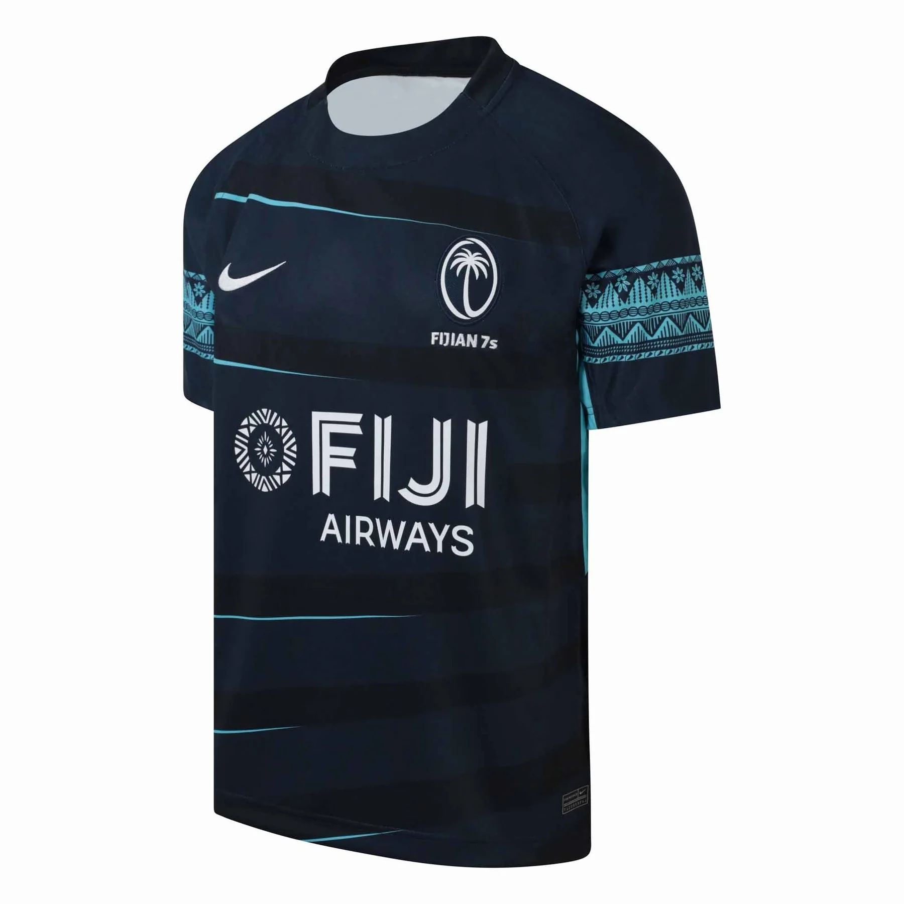 This FIJI Sevens 2022 Mens Away Jersey offers you a relaxed feeling with its round collar and standard fit. Its highly breathable fabric helps absorbs sweat more easily to keep you cool whether you’re on the pitch or in the stands. Its rather particular design reflects the marks of the Fiji 7’s team, the friezes on its sleeves recall the tropical atmosphere.