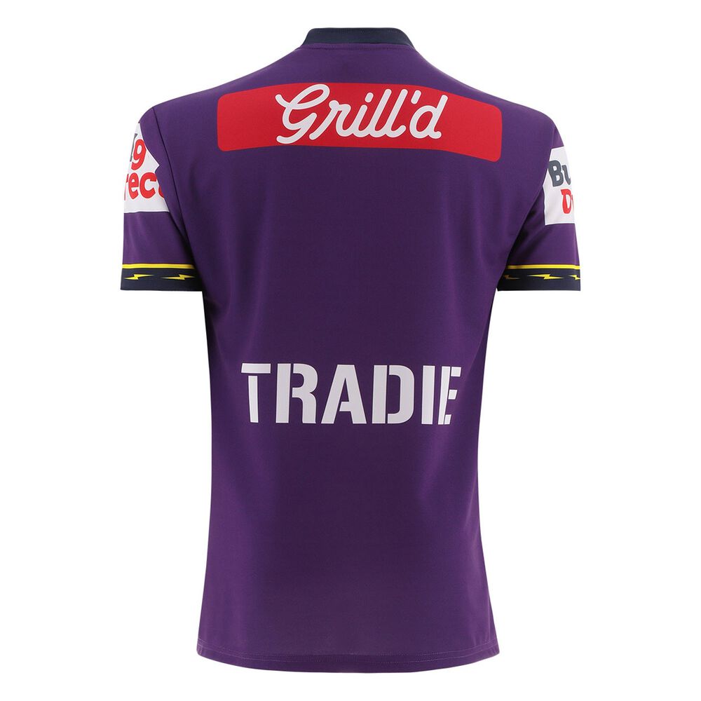 A bold yellow V slices through a deep purple base, symbolising Melbourne Storm’s proud heritage and fearless identity. Lightning bolts streak across each sleeve, capturing the team’s intensity and connection to their fans. A rich navy ombre rises above the chest, blending four shades that add modern depth to the classic design. Made from high-stretch, quick-drying Koolite Flex fabric, it helps fans stay cool, dry and comfortable, wherever they’re taking in the action of the game.