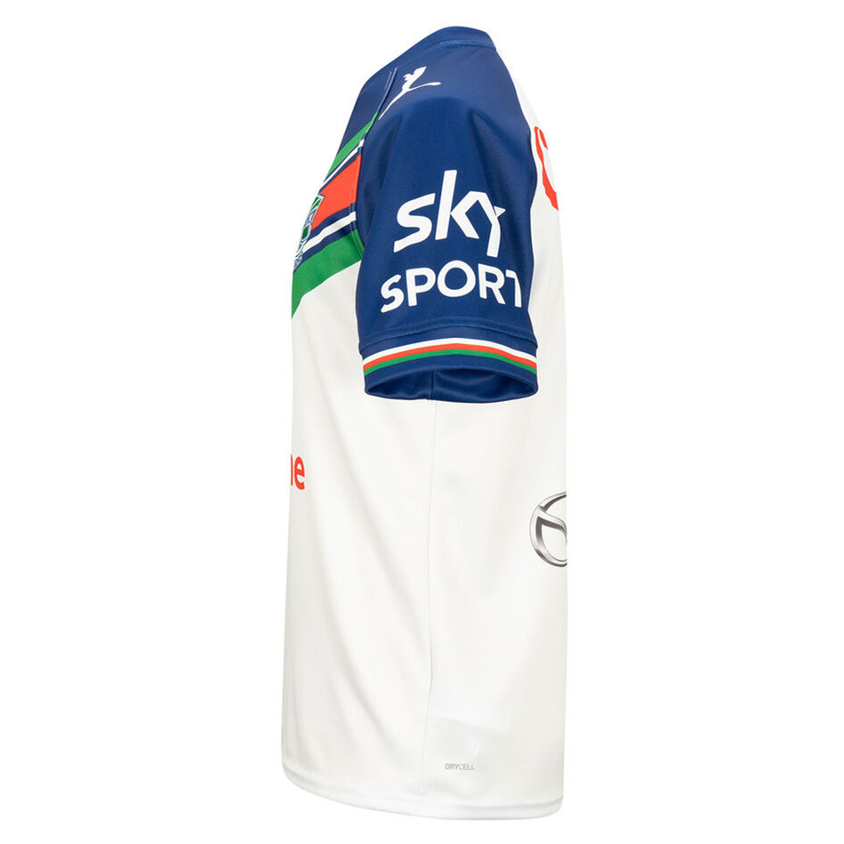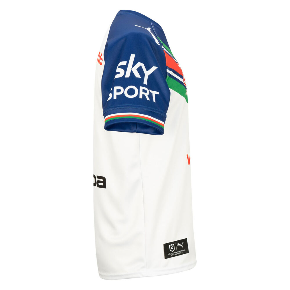 When the Warriors cross the Tasman to do battle, they swap their tradtional blue jersey design for the white of the Warriors 2022 Mens Away Jersey. The replica jersey recreates that worn by the Warriors when they play away from Mount Smart, down to the sponsors logos. Finished with official Warriors and Telstra NRL Premiership badges stitched on the chest you can wear it with pride throughout the season.
